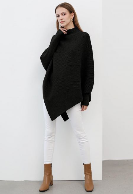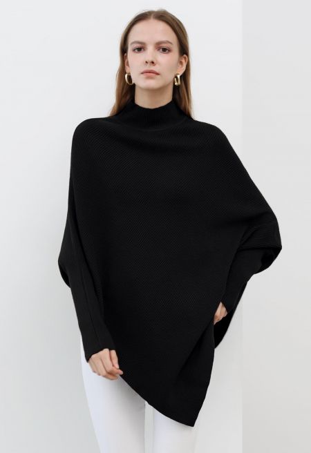 Step into effortless elegance with our Asymmetric Batwing Sleeve Ribbed Knit Poncho. The batwing sleeves provide a unique and comfortable fit, while the ribbed knit texture adds a touch of tactile charm. With its asymmetric design, this poncho is a fashion statement that will keep you cozy and chic on any occasion.