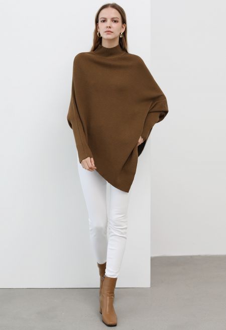 Step into effortless elegance with our Asymmetric Batwing Sleeve Ribbed Knit Poncho. The batwing sleeves provide a unique and comfortable fit, while the ribbed knit texture adds a touch of tactile charm. With its asymmetric design, this poncho is a fashion statement that will keep you cozy and chic on any occasion.