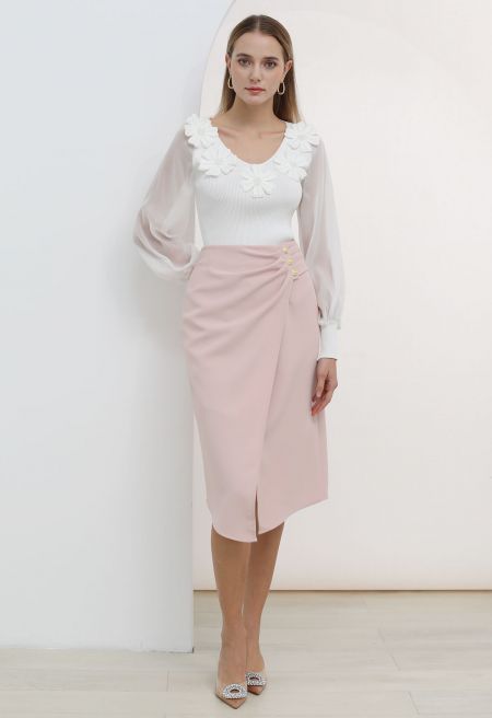 Introducing our exquisite spliced knit top, a fusion of romance and modernity! The eye-catching 3D flowers are beautifully stitched on the front of the top, adding a touch of romance and femininity. The sheer bubble sleeves, enhanced by the spliced detailing, lend a modern and edgy feel to this unique and captivating top.