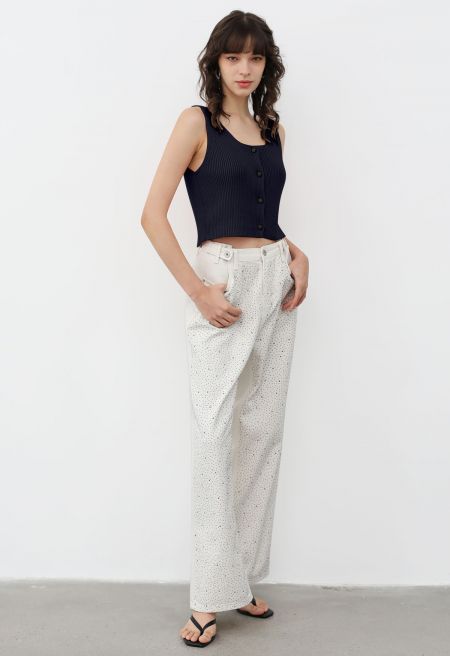 Crafted from premium, breathable knit fabric, this top features a flattering sleeveless cut and a playful cropped hem, perfect for pairing with high-waisted jeans or skirts. The front button-down detail adds a touch of elegance and allows for easy styling. Whether dressed up or down, this crop top is a must-have for effortless, trendy looks.