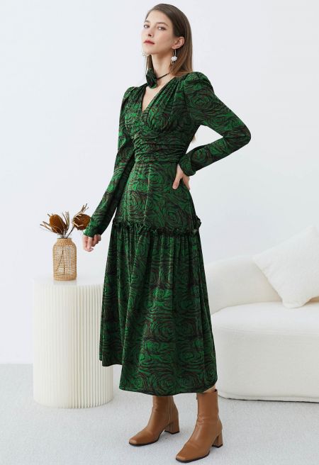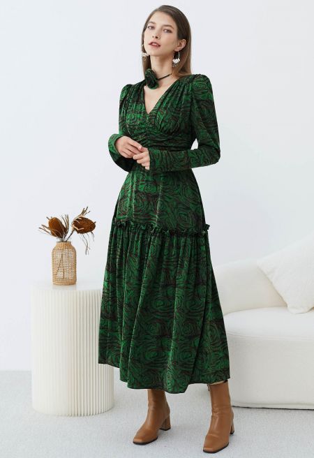 Step into elegance with the Fantastic Rose V-Neck Ruched Midi Dress. This stunning piece boasts a flattering V-neck, gentle ruching for a fitted silhouette, and a chic choker detail that adds a modern twist. Ideal for making a memorable impression at any event.