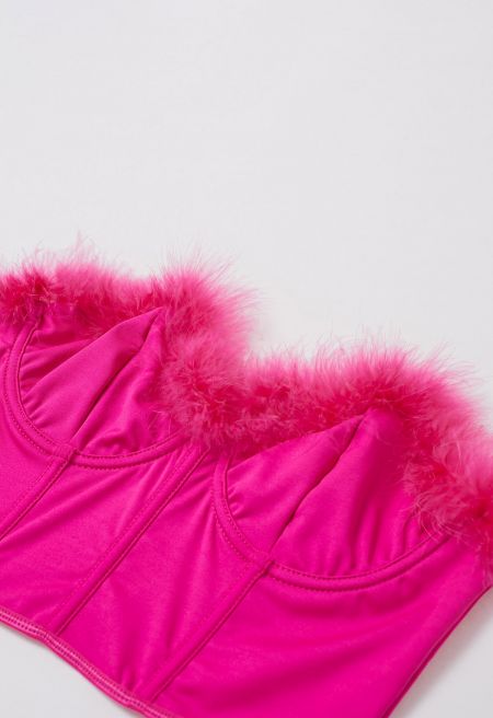 Feather Trim Bustier Crop Top in Hot Pink