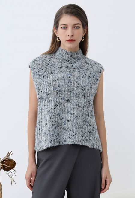 Wrap yourself in cozy sophistication with the Fuzzy Mix-Knit Mock Neck Sleeveless Top. This top features a soft, textured knit for ultimate comfort and a stylish mock neck that adds a touch of elegance. Perfect for layering or wearing solo, it’s a chic choice for any occasion.