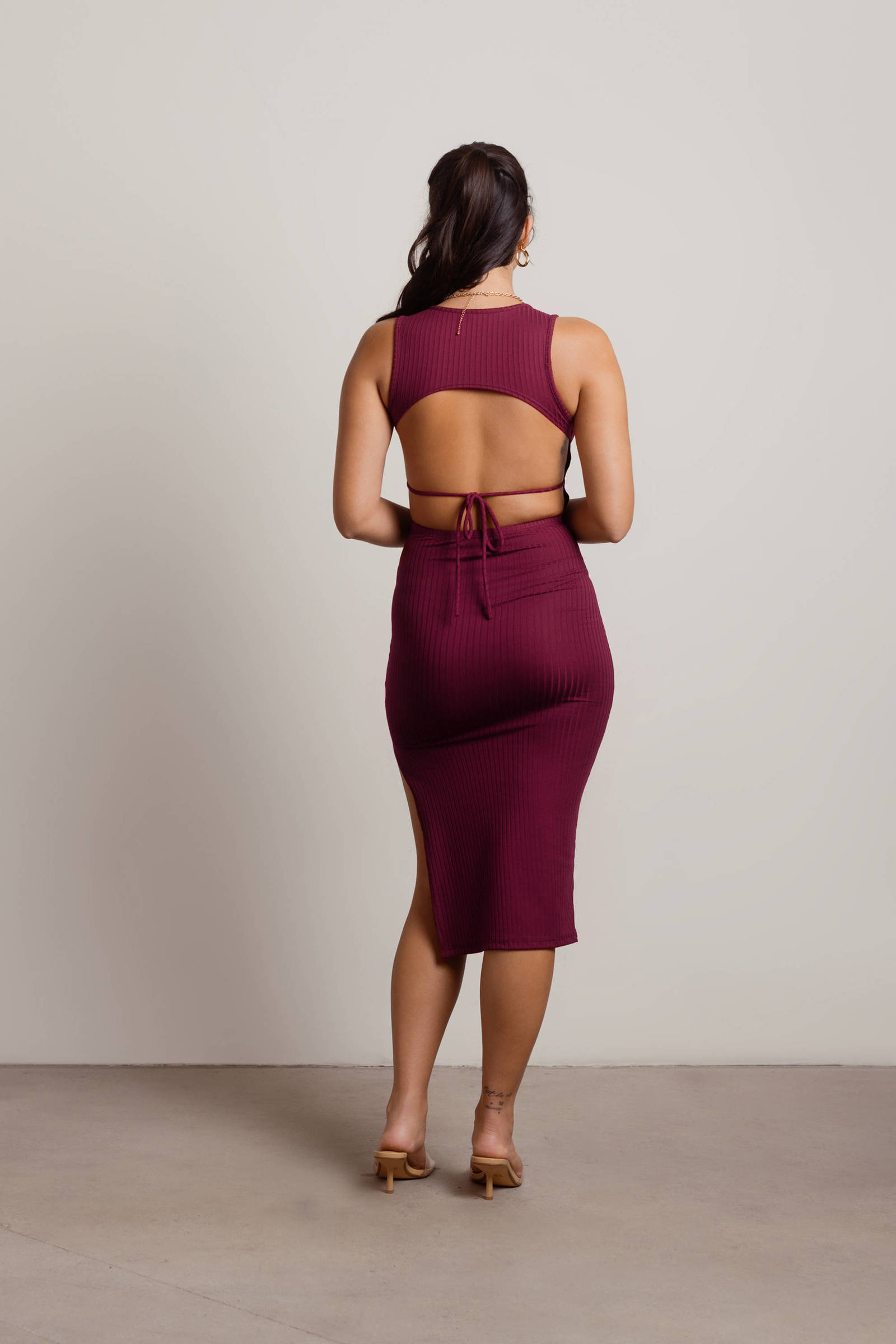 Turn heads and steal hearts in the Katara Ribbed Side Slit Backless Bodycon Midi Dress in Mulberry Purple! This stunning midi dress features a flattering ribbed texture that hugs your curves perfectly, while the daring side slit adds a sultry touch. The backless design offers a chic, unexpected twist, making it perfect for date nights or special occasions. Pair it with strappy heels and statement accessories, and get ready to light up the room with your undeniable style!