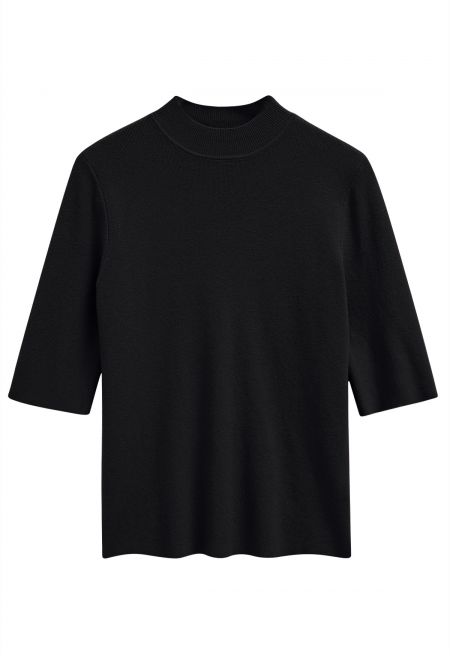 Featuring a sophisticated mock neck and elbow-length sleeves, this top offers a flattering fit for all body types. Its versatile design seamlessly transitions from day to night, making it perfect for any occasion. Whether you’re in the office or out for dinner, this knit top adds a touch of class to your ensemble.