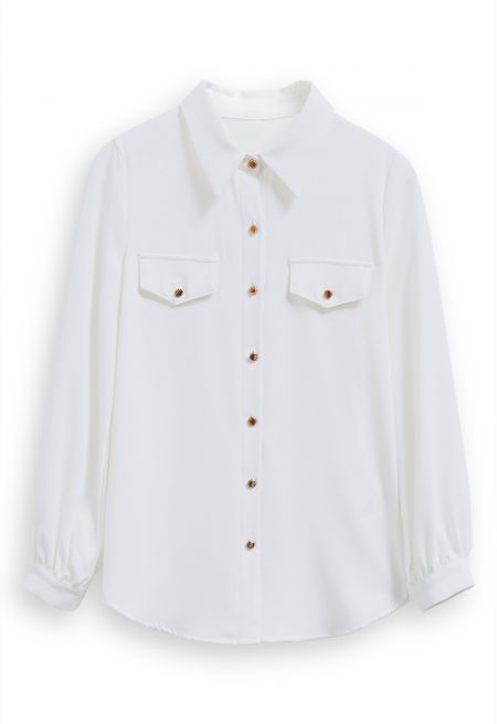 Discover the perfect blend of modern flair and timeless elegance in our Button-Accented Chiffon Shirt. With its contemporary design and delicate chiffon fabric, this shirt exudes sophistication. The button accents add a touch of uniqueness to a classic look, making it a versatile choice for both casual and formal occasions.