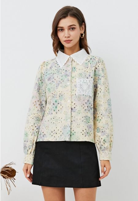 Step into effortless style with our Rose Printed Eyelet Embroidered Patch Pocket Denim Shirt! The delicate rose print and intricate eyelet embroidery add a touch of feminine charm, while the classic denim fabric keeps it casual and cool. Dress it up or down, this versatile piece adds a unique twist to your wardrobe essentials!