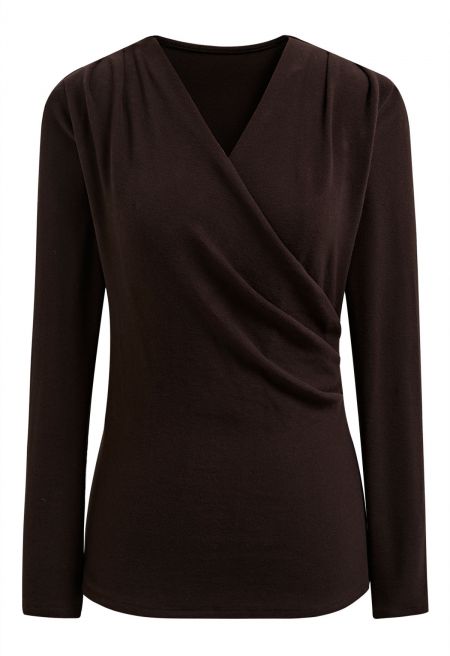 This piece is the epitome of understated chic, blending a classic wrap design with a luxuriously soft fabric. Ideal for those who love to look polished with minimal effort, this top offers a flattering fit that wraps you in comfort and style. Perfect for transitioning from office elegance to evening grace.