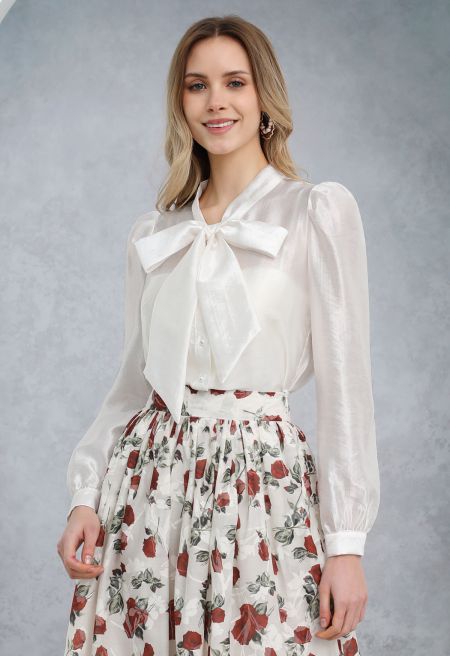 Made from high-quality satin with a delicate texture, it features a self-tie bowknot at the neckline that adds a touch of feminine grace. Its soft, lustrous fabric ensures comfort and a flattering fit, making it a versatile piece for both formal and casual occasions.