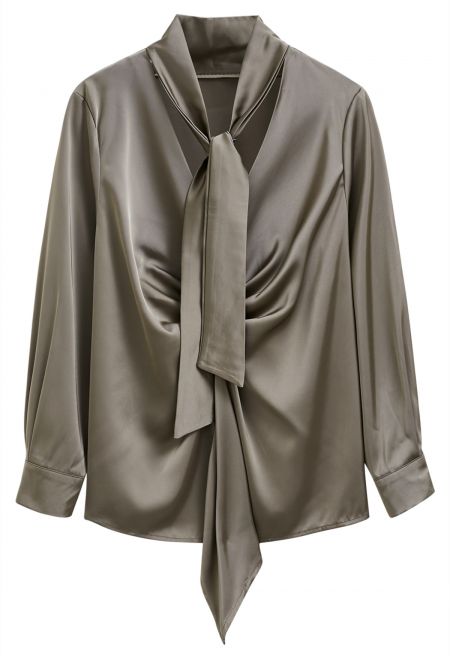 Indulge in glamour and versatility with this blouse, seamlessly transitioning from day to night. The satin-finished fabric drapes gracefully, complementing the deep V-neckline that adds a touch of allure. The self-tie sash at the neckline allows for a personalized, chic look, while the exquisite ruched detailing enhances the overall elegance.