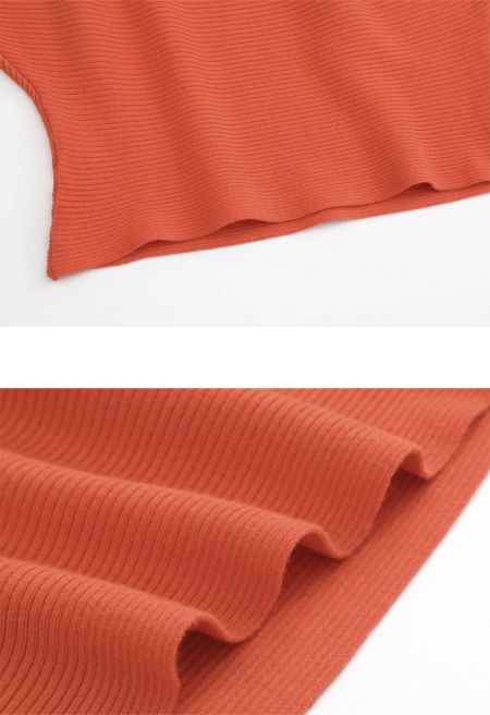 Turtleneck Batwing Sleeves Rib Sweater in Orange